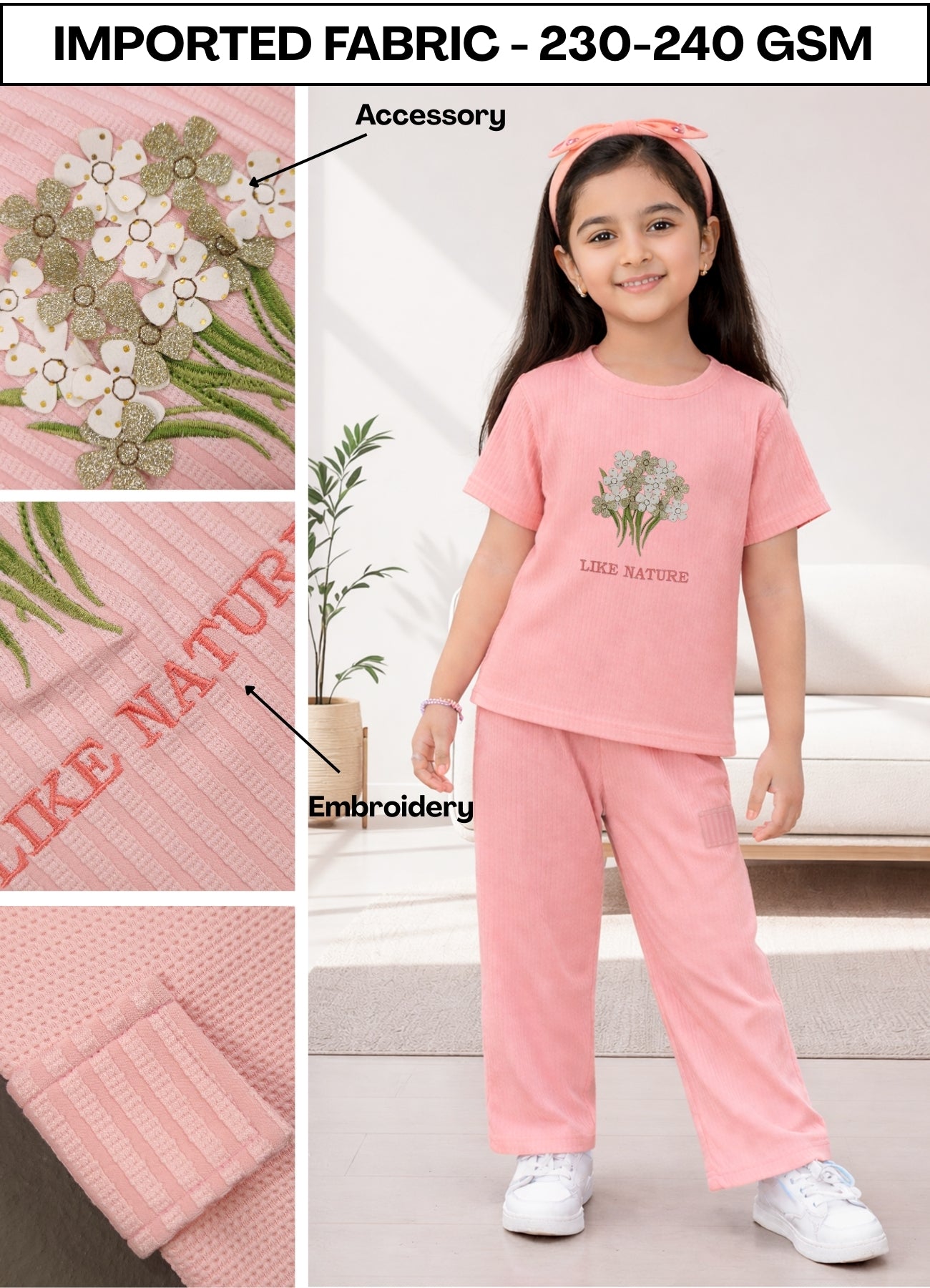 FL - 1704 Peach Embroidery Cord Set ( Pack of 6 )